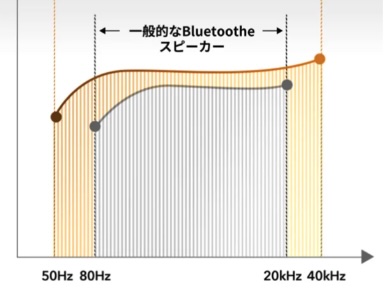 例えば以下は、あるBluetoothスピーカーの再生可能な周波数範囲です。